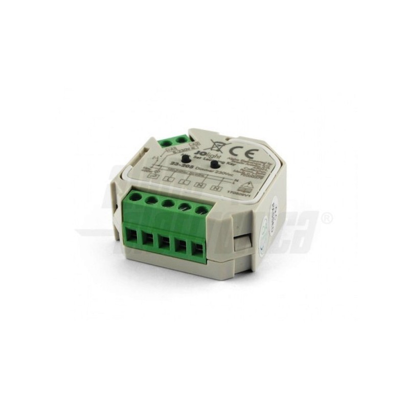 DIMMER CONTROLLER A TAGLIO DI FASE (230 Vac) CON REGOLAZIONE A PULSANTE E RICEVITORE RF. QUESTO CONTROLLER FUNZIONA DA RICEVITORE PER OPPORTUNI TELECOMANDI A RADIO FREQUENZA ATTRAVERSO I QUALI È POSSIBILE COMANDARE L'INTENSITÀ DEL COLORE. IL TELECOMANDO DEVE ESSERE ORDINATO SEPARATAMENTE IN BASE ALLE ESIGENZE DI CONTROLLO. QUESTO DISPOSITIVO MANTIENE MEMORIA DELL'ULTIMO MODO DI FUNZIONAMENTO IMPOSTATO ANCHE DOPO AVER SPENTO E RIACCESO L'ALIMENTAZIONE.