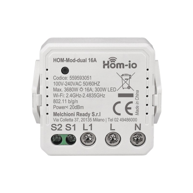 MODULO SWITCH DA INCASSO 16A 1 CANALE WIFI HOM-MOD-DUAL 16A