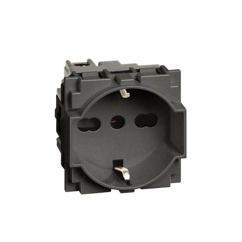 PRESA 2P+T 16A 250 Vac - INTERASSE 19 mm E 26 mm IN CONFIGURAZIONE BIPASSO - ALVEOLI PROTETTI - CONTATTI LATERALI DI TERRA PER SPINE STANDARD TEDESCO - ADATTA PER: SPINE STANDARD ITALIA 2P E 2P+T 10/16A, SPINE STANDARD TEDESCO 2P+T 16A - 2 MODULI - NERO